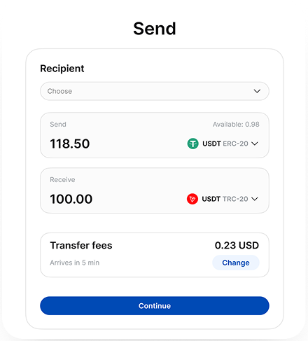 Send, receive, and convert multiple stablecoins instantly — without gas tokens, optimized blockchain costs, and built-in payment records.
