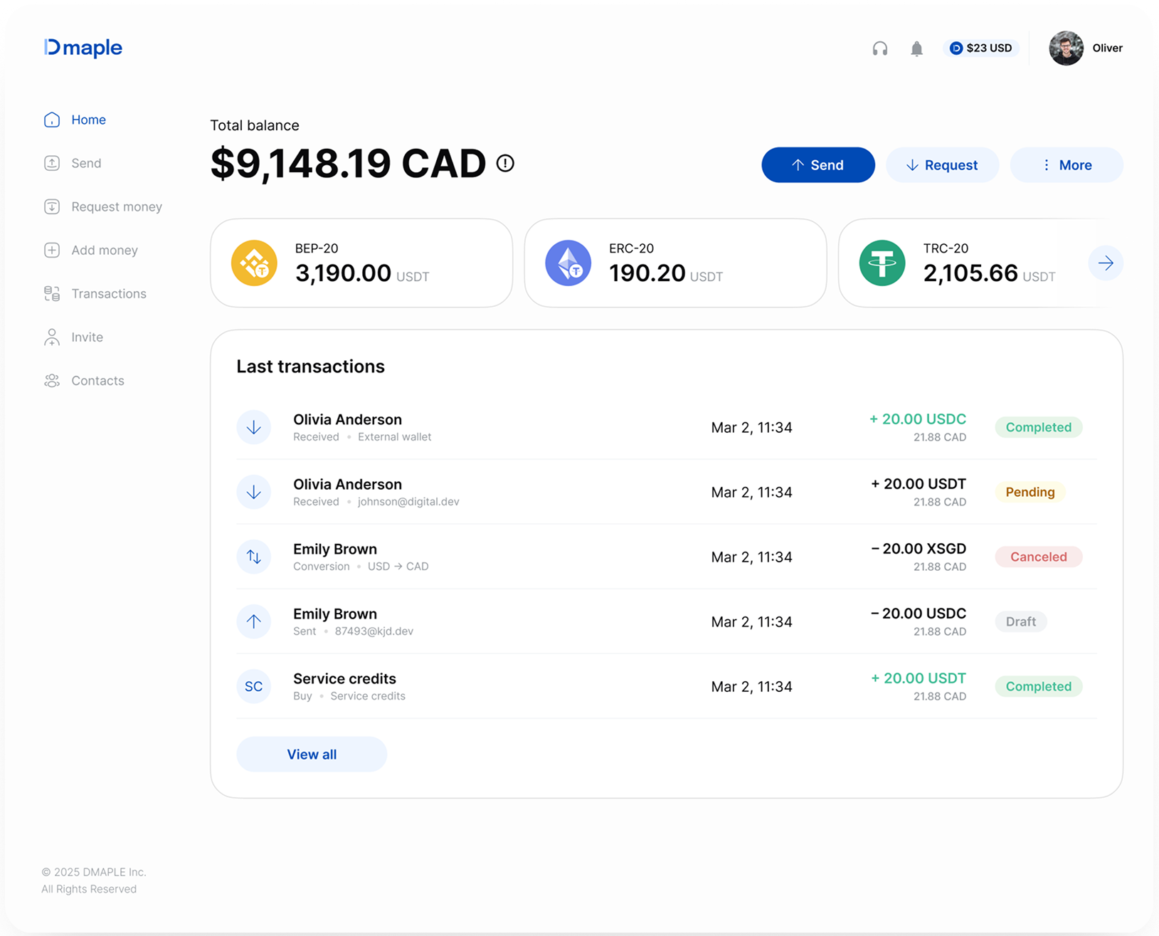 DMaple® gives you the tools to move money the way you need — whether for personal use or business growth.